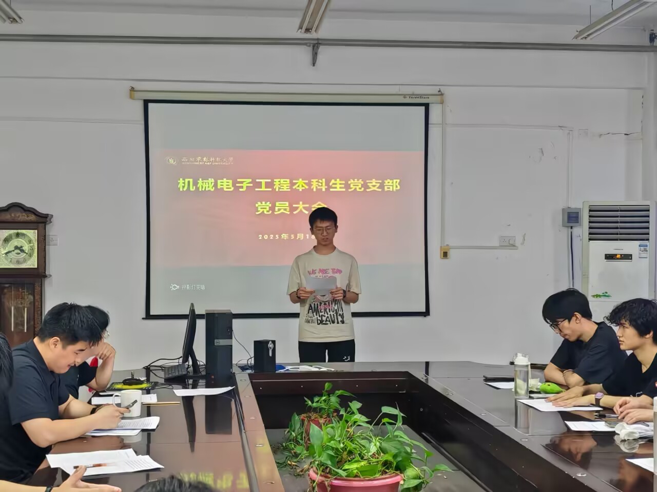 5月16日,机械电子工程本科生党支部在机电学院9402召开接收预备党员大会,会议严格按照发展党员工作细则,规范有序进行,机械电子工程本科生党支部全体成员出席此次会议。
