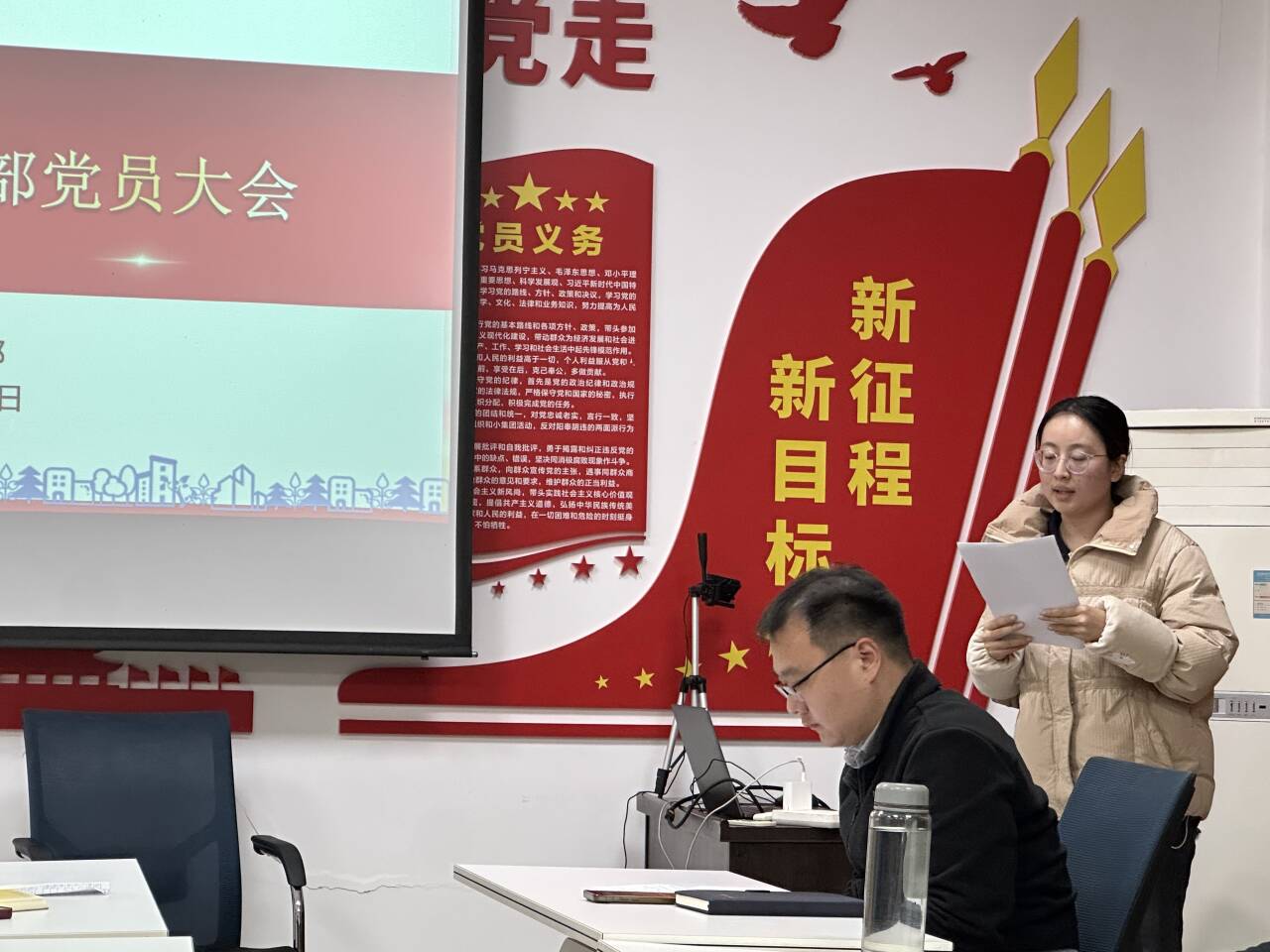专题学习结束后,会议进入预备党员转正换届。预备党员赵志如同志郑重向党组织提交转正申请,从思想学习、社会实践、工作建设等方面详细汇报了预备期间的成长与进步,同时深刻剖析了自身存在的问题与不足,表达了加入中国共产党的志愿和为党的事业终生奋斗的决心。随后入党介绍人梁晓颖和王鸿睿同志分别介绍了赵志如同志在预备期内的考察情况,经无记名投票表决,大会一致同意接收赵志如同志为中国共产党正式党员。