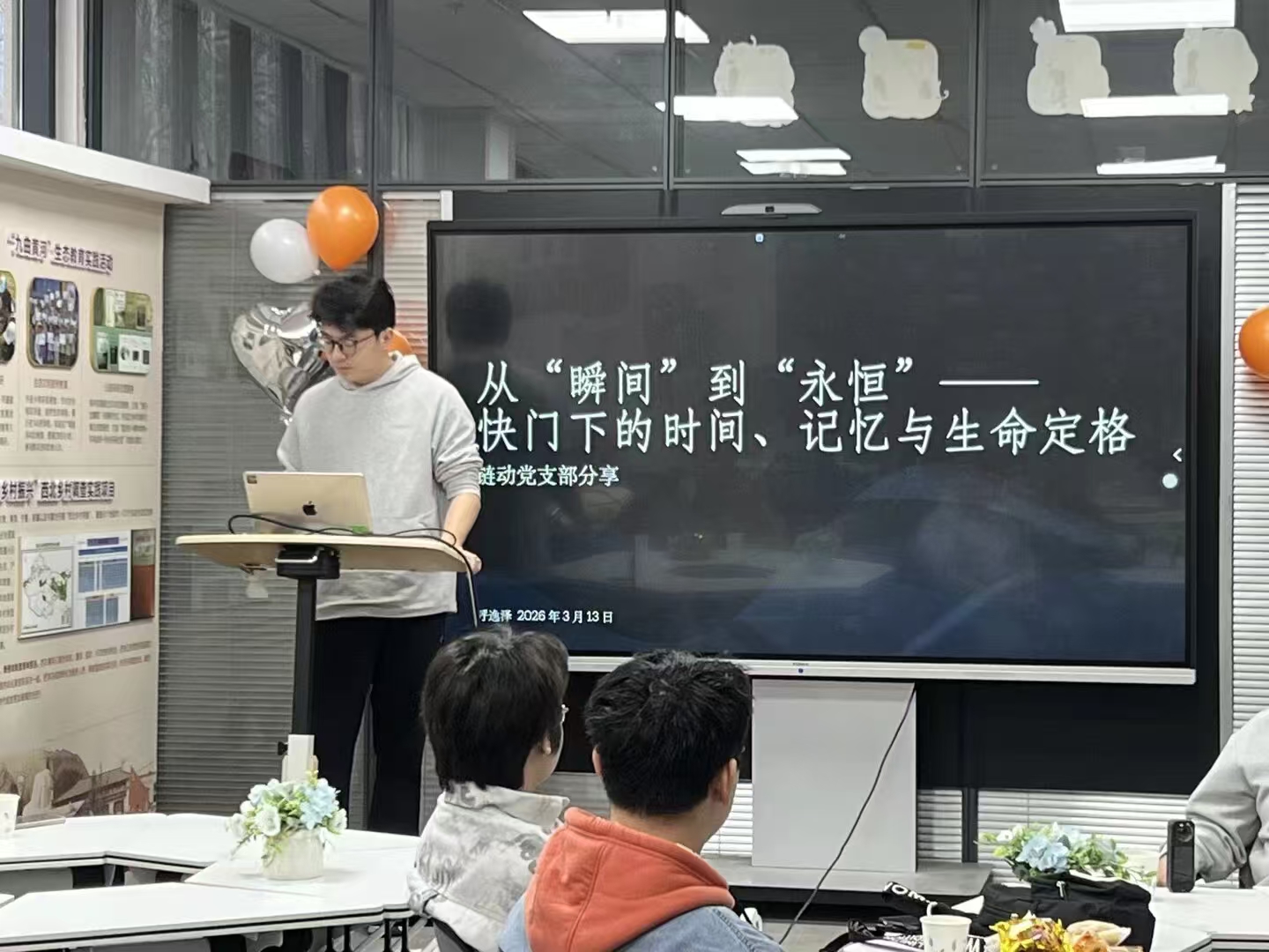 2026年3月13日,由机械与电子工程学院“链动”党员模范先锋队主办的第三期“链动心声”研讨交流会在“一站式”学生社区活动室成功举行。本次活动主题为“从‘瞬间’到‘永恒’——快门下的时间、记忆与生命定格”,特邀机械与电子工程学院辅导员呼逸泽担任观察嘉宾,与机电学院本研学子共同开启一场关于摄影与情感表达的深度对话。