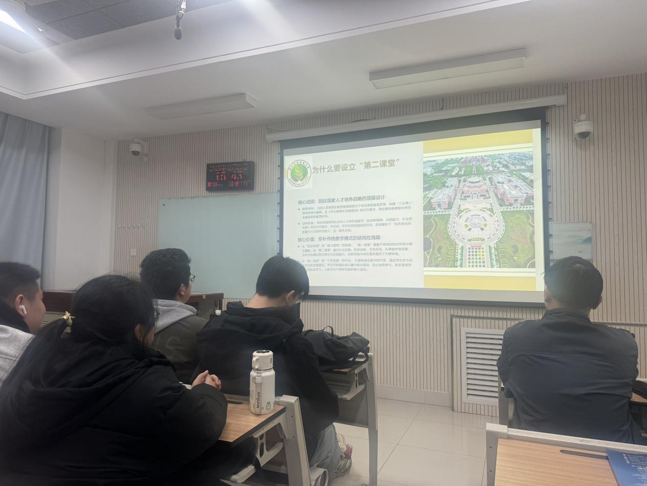 本次宣讲活动以线上线下同步推进的方式开展,全方位覆盖不同需求的同学。线下宣讲现场,主讲人围绕 “为什么要设立第二课堂” 这一核心问题,从政策导向与目标衔接两方面展开详细解读,深入阐述了第二课堂作为国家人才培养战略顶层设计的重要意义,以及其在将创新精神、实践能力、社会责任感等宏观要求转化为具体校园培养活动中的关键作用。同时,针对第二课堂各板块的设立意义进行逐一讲解:安全教育旨在筑牢安全防线,护航校园生活;创新创业实践着力激发创新思维,培育创业潜能;美育实践注重陶冶审美情操,提升人文素养;生涯规划与职业发展帮助同学们明晰职业方向,提升就业竞争力;社会实践引导学生深入社会基层,实现理论联系实际;志愿公益服务倡导践行奉献精神,担当社会责任;技能特长培养助力强化一技之长,塑造个人优势;思想政治锤炼致力于坚定理想信念,筑牢思想根基;劳动实践则着重弘扬劳动精神,锤炼实干品格。
