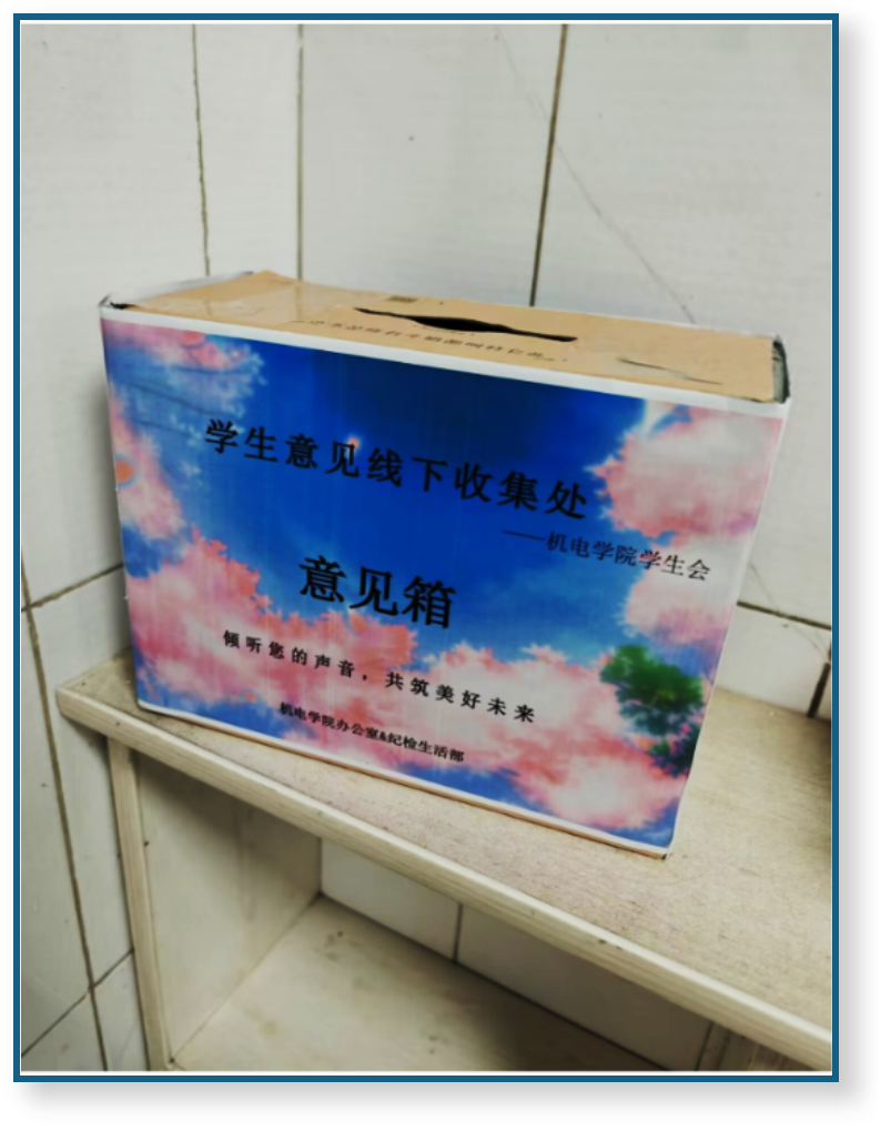 大赛期间,校园里的创作热情持续升温。设计方案在校园平台展出后,师生们纷纷留言互动,既有对樱花主题箱、宿舍生活手绘箱等高颜值作品的称赞,也提出 “加设紧急反馈标识” 等实用优化建议,让作品在交流中不断完善。组队参赛的同学还在协作过程中锻炼了团队能力,学会倾听不同想法,正如一位参赛者所说:“做意见箱的过程,也是我们学着‘听见彼此’的过程。”
