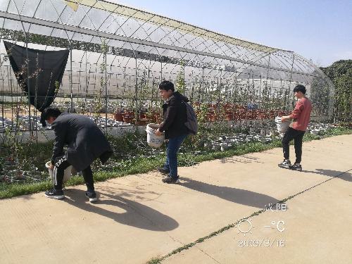 来到合作社后,阿姨告诉我们这次我们的任务是将温室中的盆栽搬运到指定的位置。随着春天的的到来,气温也逐渐回升,原本为了保证作物生长环境温度的大棚,在寒冷的冬天过去之后已经完成了它的使命,原本在花盆中栽种的植物也可以挪到外界的环境生长了。同学们按照花盆内作物的种类将其依次搬送到定点的位置上。因为花盆数目较多,体积较大,内部还有栽种所用的泥土,整体重量很大,即使是队里的男同学在搬动的过程中也觉得很吃力,但同学们还是依旧坚持完成了任务,因为我们的工作可以减轻农民伯伯们的工作负担,在他们为我们辛勤耕耘的同时,我们也想要用自己的努力来回报他们。