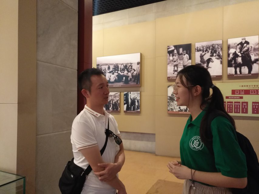 之后,队员们与纪念馆中的一位老人家进行交谈。队员了解到,老人家姓刘,是外地的游客。刘老先生向队员说到:“这些是他们那个年代的故事,他经历过那个年代,心中充满回忆和怀念,所以想来看看。”