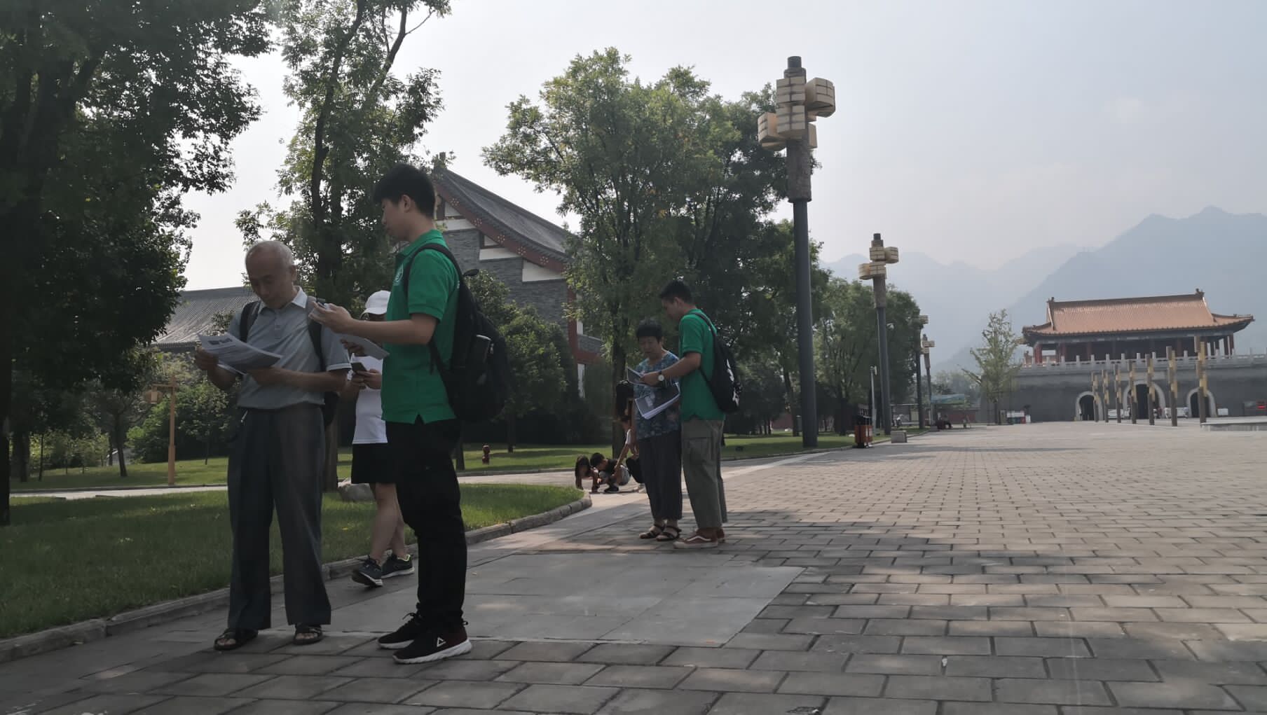 实践调查队成员正在向楼观台工作人员询问当地环境情况及环境保护举措