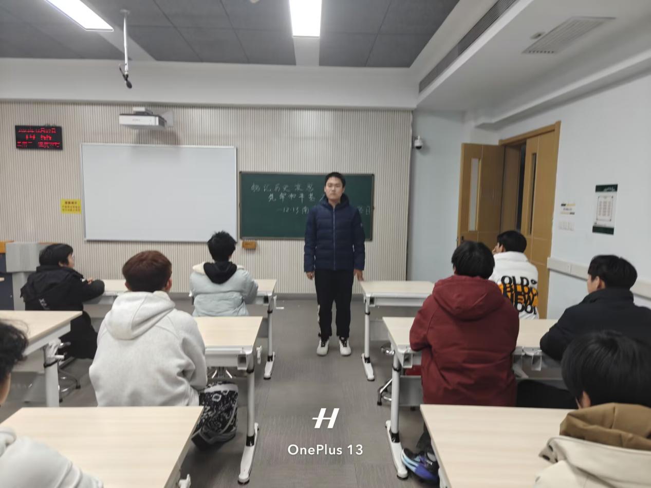 活动尾声,主席团成员总结强调,希望全体同学以此次学习为契机,做到三点要求:一是坚守历史记忆,主动学习党史国史,深刻铭记南京大屠杀等历史惨案,坚定历史自信、反对历史虚无;二是厚植家国情怀,将个人成长融入国家发展大局,把爱国热情转化为学习奋斗的实际行动;三是践行和平担当,树立正确的和平观,在校园中传递正能量,以青年之力助力构建人类命运共同体。