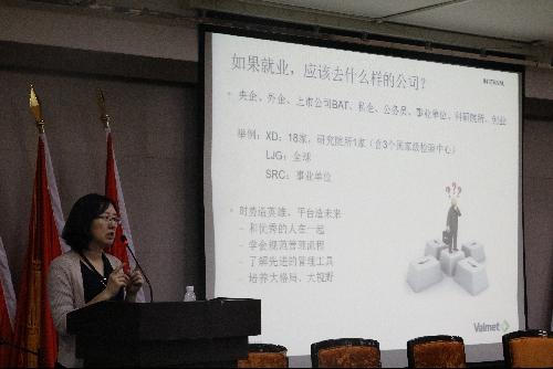 丁女士演讲结束后,组织了学生交流互动环节。学生们就大学生在校期间应注重哪些方面能力的培养才能在入职后适应企业的要求、维美德造纸机械技术(西安)有限公司在学生入职后会为学生提供哪些深造平台和成长空间等问题进行了咨询互动。丁女士以科学、详实的数据,幽默风趣的语言解答了同学们的疑惑,并鼓励同学们要树立自信、大胆展示自己、坚持阅读和学习、努力提升自己的综合素质,做一个做事要用心、有悟性、积极上进的青年。