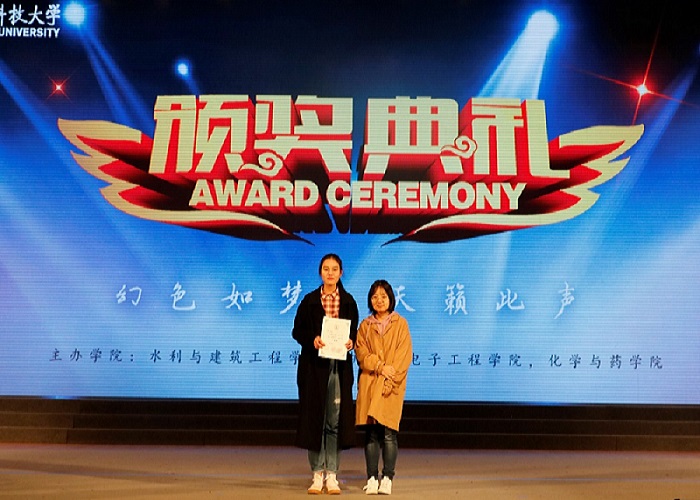 经过将近两个小时的比赛,来自水利1904的朱厚霖、车辆1802的黄菲菲和机械1907的范帅力分别凭借《约定》、《侧脸》和《当我想你的时候》获得了三等奖;来自水工1803的代素、机械1904的叶冰慧以《乡》和《the show》获得了二等奖;来自化生1801的张潇月凭借《愚人码头》赢得最后的一等奖。评委们为获奖选手颁奖并合影留念。比赛在一片欢腾的喝彩声和如鸣般的掌声中圆满结束。
