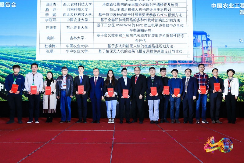 我院18名博、硕士研究生参加了学术年会,并就自己的研究进展做了口头汇报或墙报展示,其中2019级博士研究生赵健汇报的《振刷式枸杞采收机设计与试验优化》和2017级硕士研究生田世杰汇报的《考虑直径影响的苹果霉心病透射光谱修正及检测》荣获本次学术年会的学生优秀报告奖,部分研究生的墙报受到参会师生的广泛关注,并围绕研究进展与参会师生代表进行积极讨论与交流,。